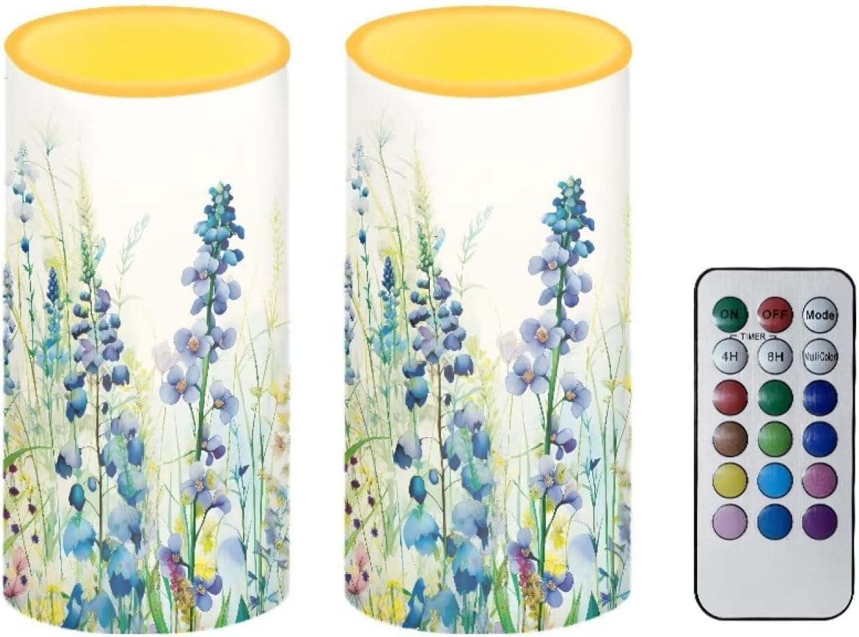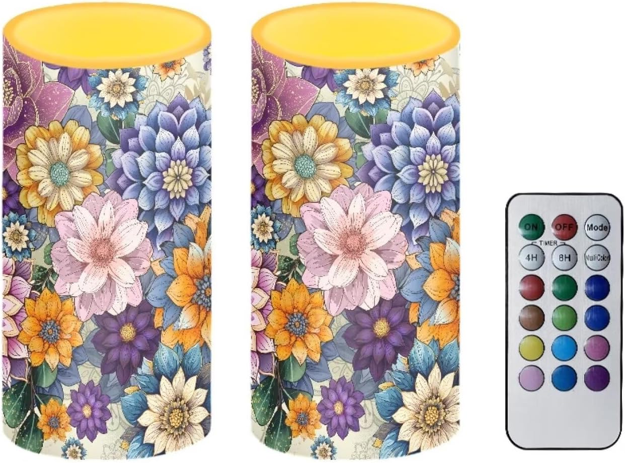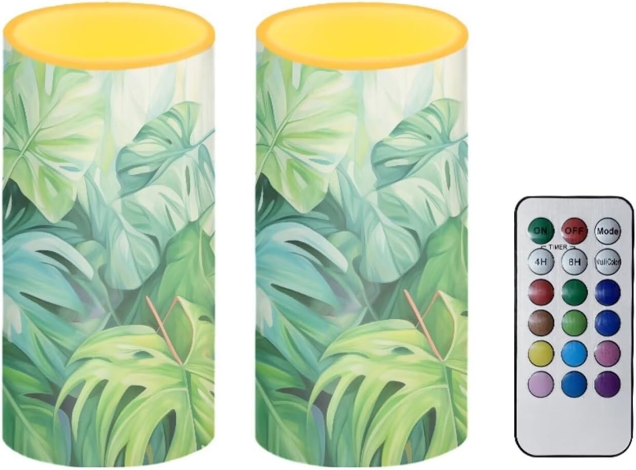 BASIC INFORMATION Package include:2 PCS LED light candles+ 18-key timing remote.(candles do NOT contain batteries) Size:Diameter 3", Height 5.7". Required battery model:3 AAA batteries for each candle Where to use:Suitable for home decoration, hotel, bar, church, beach, outdoor. Suitable for important days, Christmas, Mother's Day, birthday parties, weddings, anniversaries, ceremonies, appointments, etc. FEATURES -No smoke, no fire, no odor. Don't worry about the hidden danger of burning, it looks like a real candle and can be lit with confidence. -Beautiful Pillar Candles. Can be place them in different corners, the light of each candle can be individually controlled by the remote control. -12 colors are controllable, switch the light color to create a unique atmosphere. Select multicolor mode, it will automatically change color. -Can be timed 4 hours or 8 hours according to your needs.